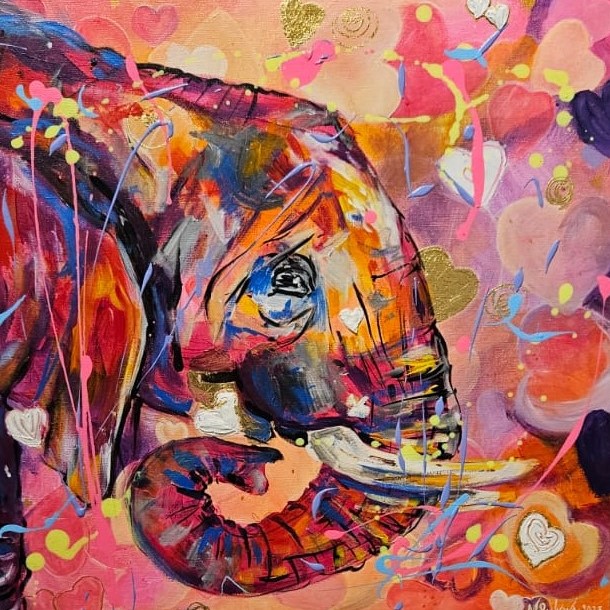 Acrylic and crystals – amethyst and rose quartz