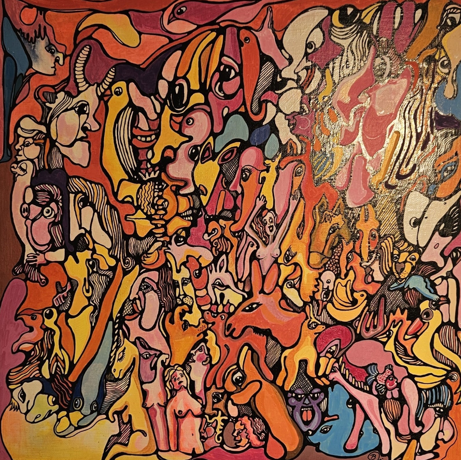 SEO Keywords: expressive art, world in flames, contemporary acrylic painting, modern artwork, Barbara Zimmermann, exhibition Bad Rothenfelde
