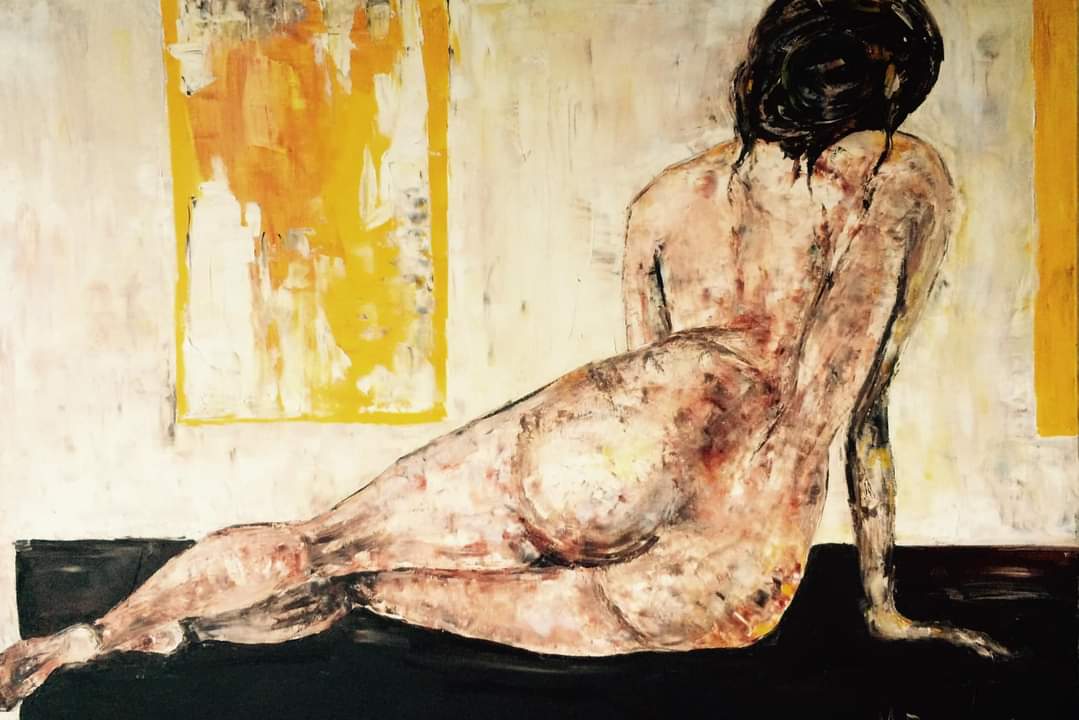 I created this painting as part of series of female bodies that reveal gentle, rounded shapes of the female body and bring coziness and warmth.