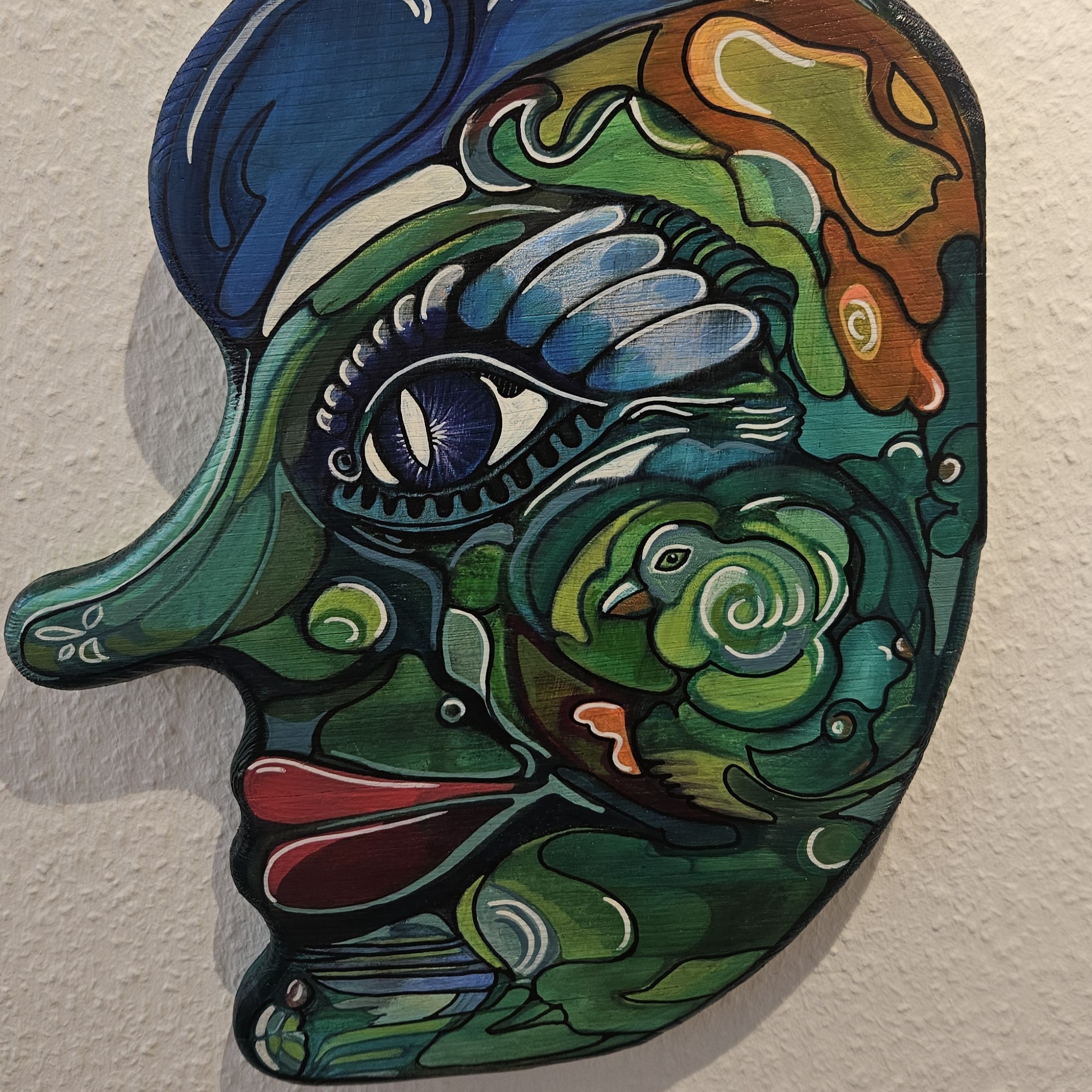 SEO Keywords: green art, art on wood, bird motifs, imaginative painting, Barbara Zimmermann, creative portraits, gallery of modern art, unique pieces from Germany