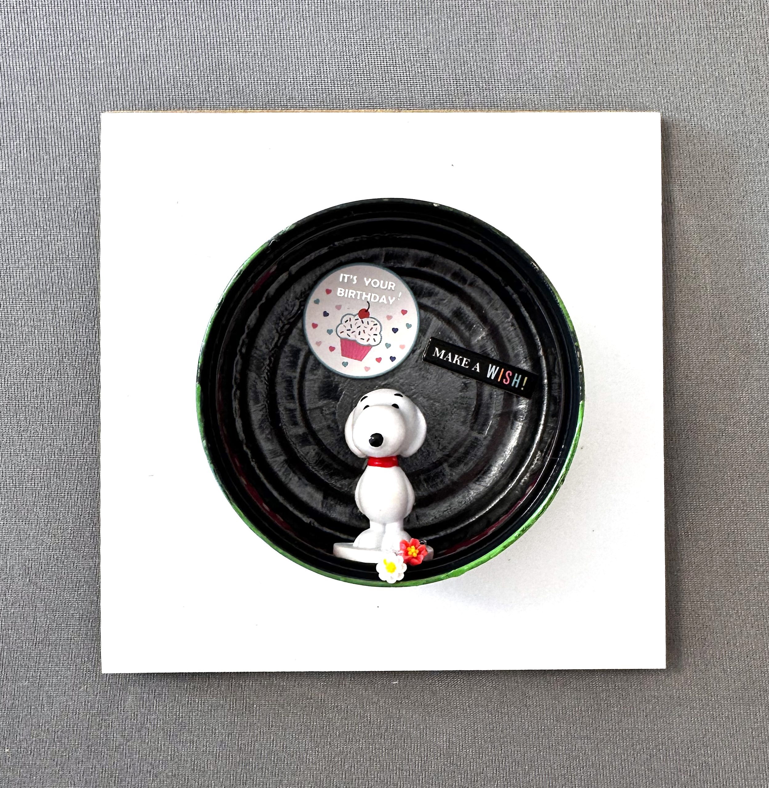 Snoopy, birthday, Make a Wish, birthday gift, 3D collage, handmade art, wall decoration, Peanuts fans, pop art, unique gift, vintage style, home decor, cute decoration, special gift idea, recycled art