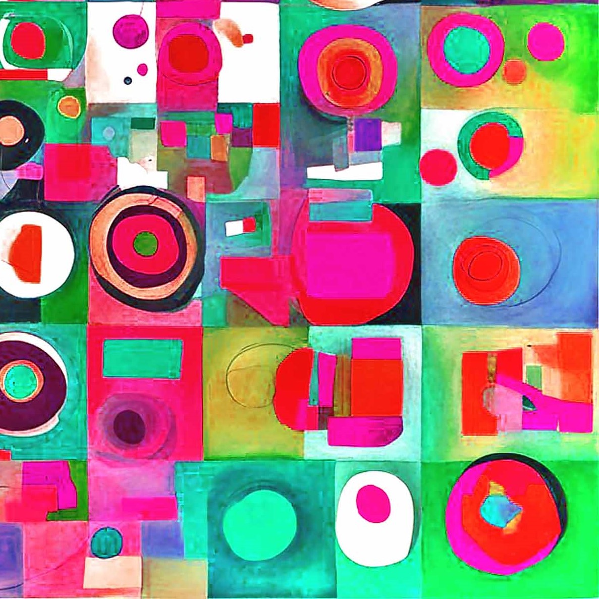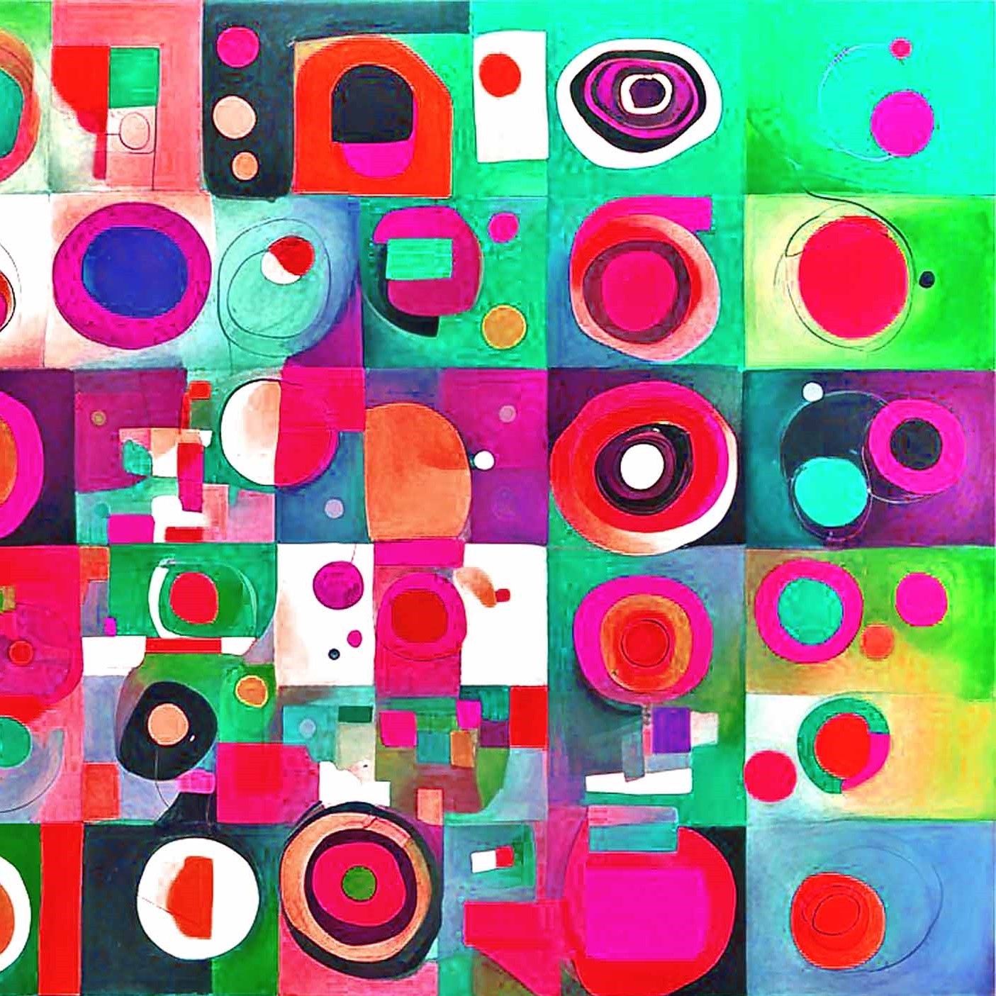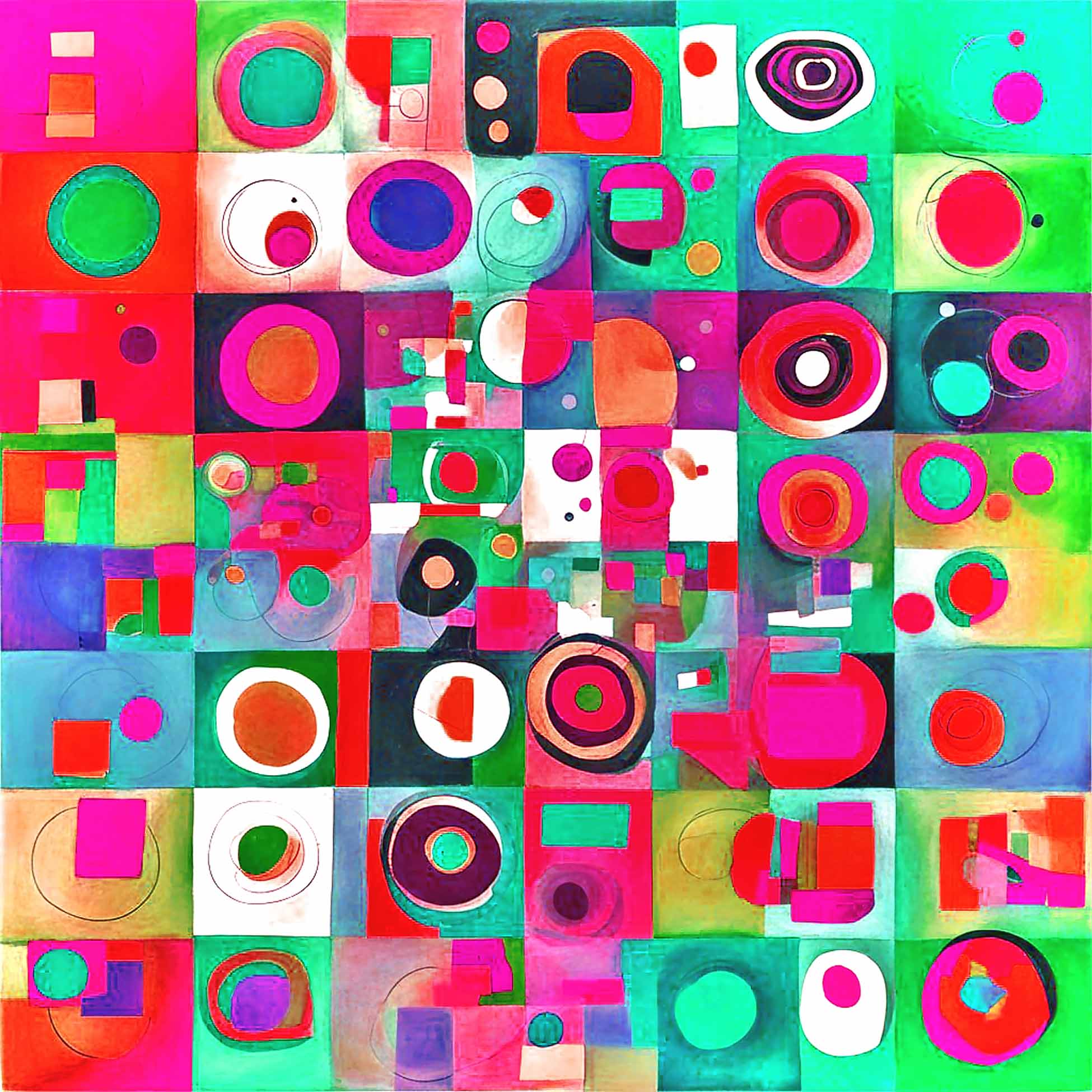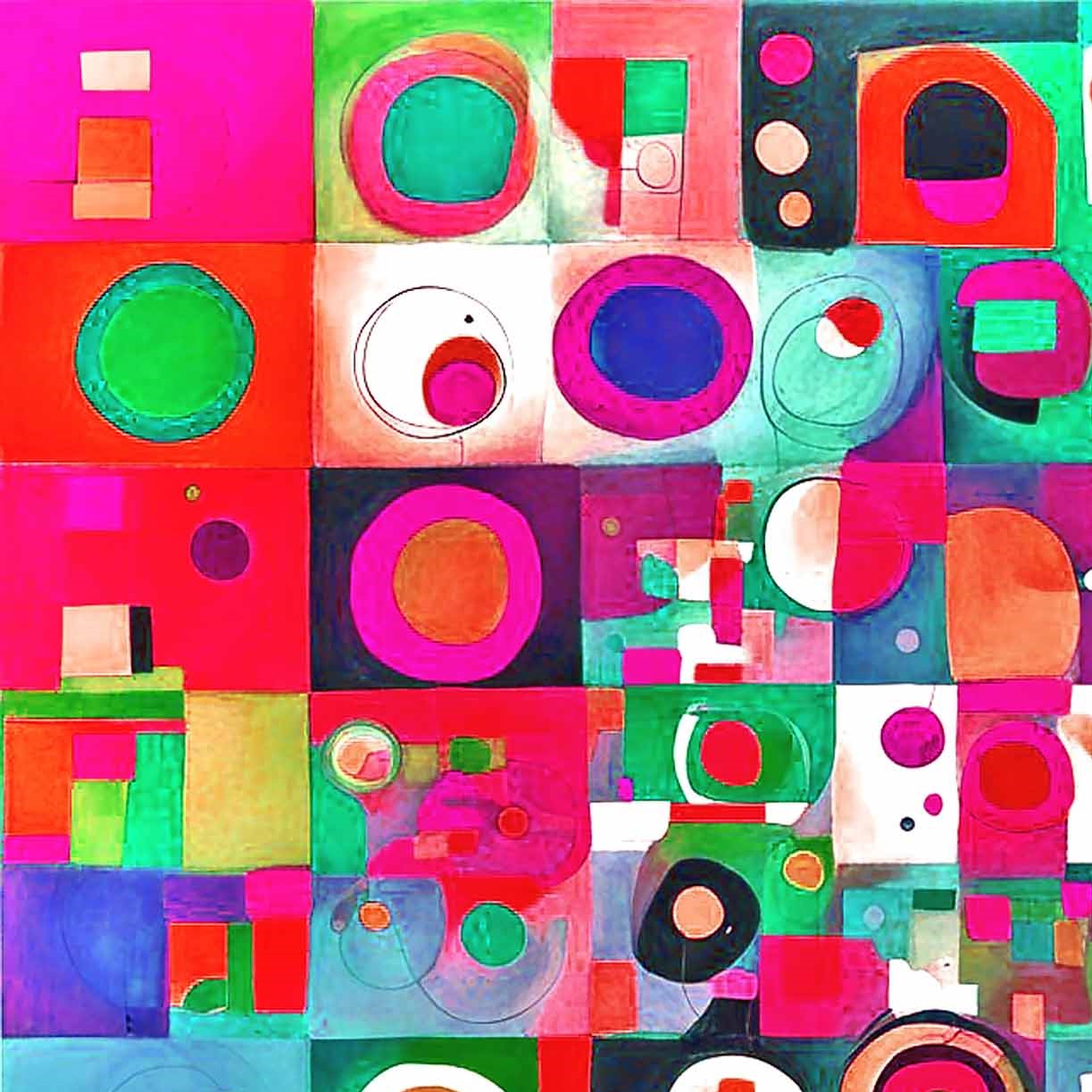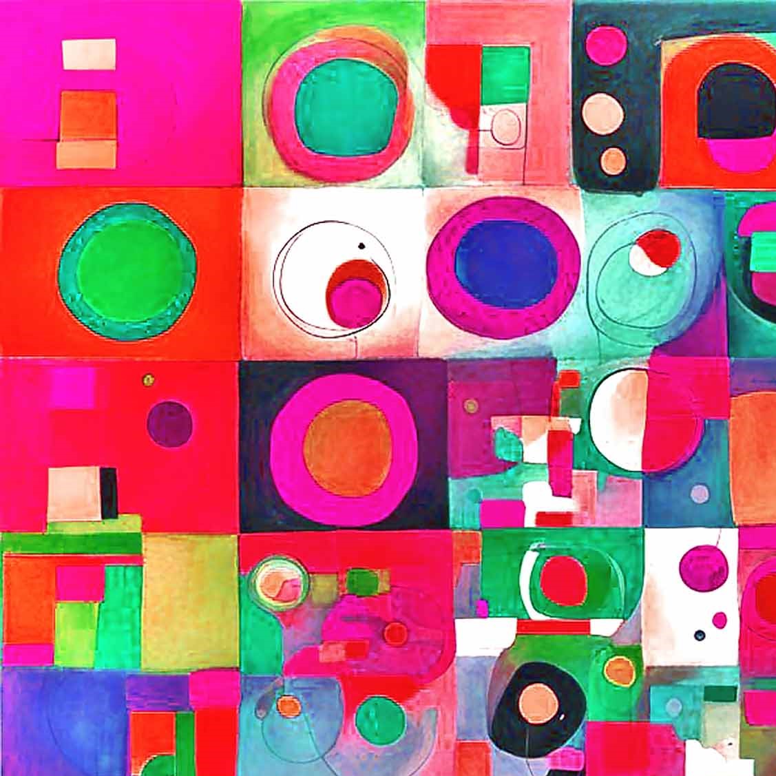 Abstract geometric art, colorful modern painting, contemporary composition, vibrant abstract design, Bauhaus influence, digital abstraction.