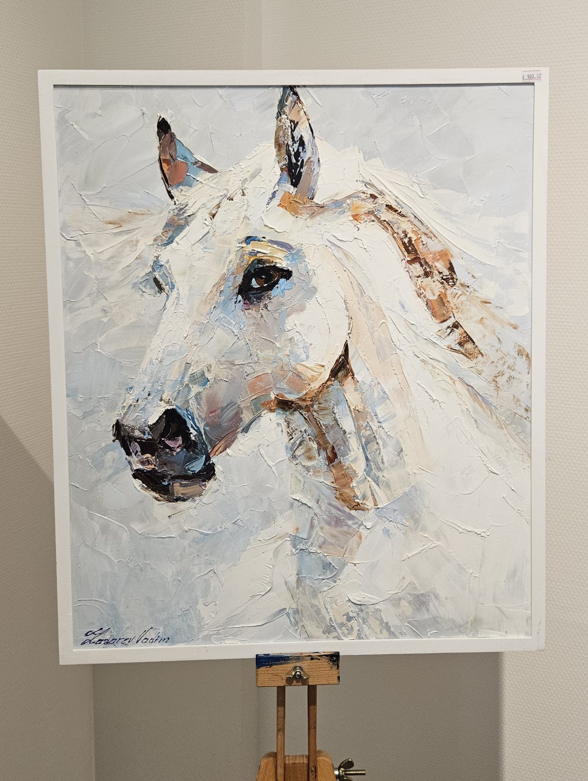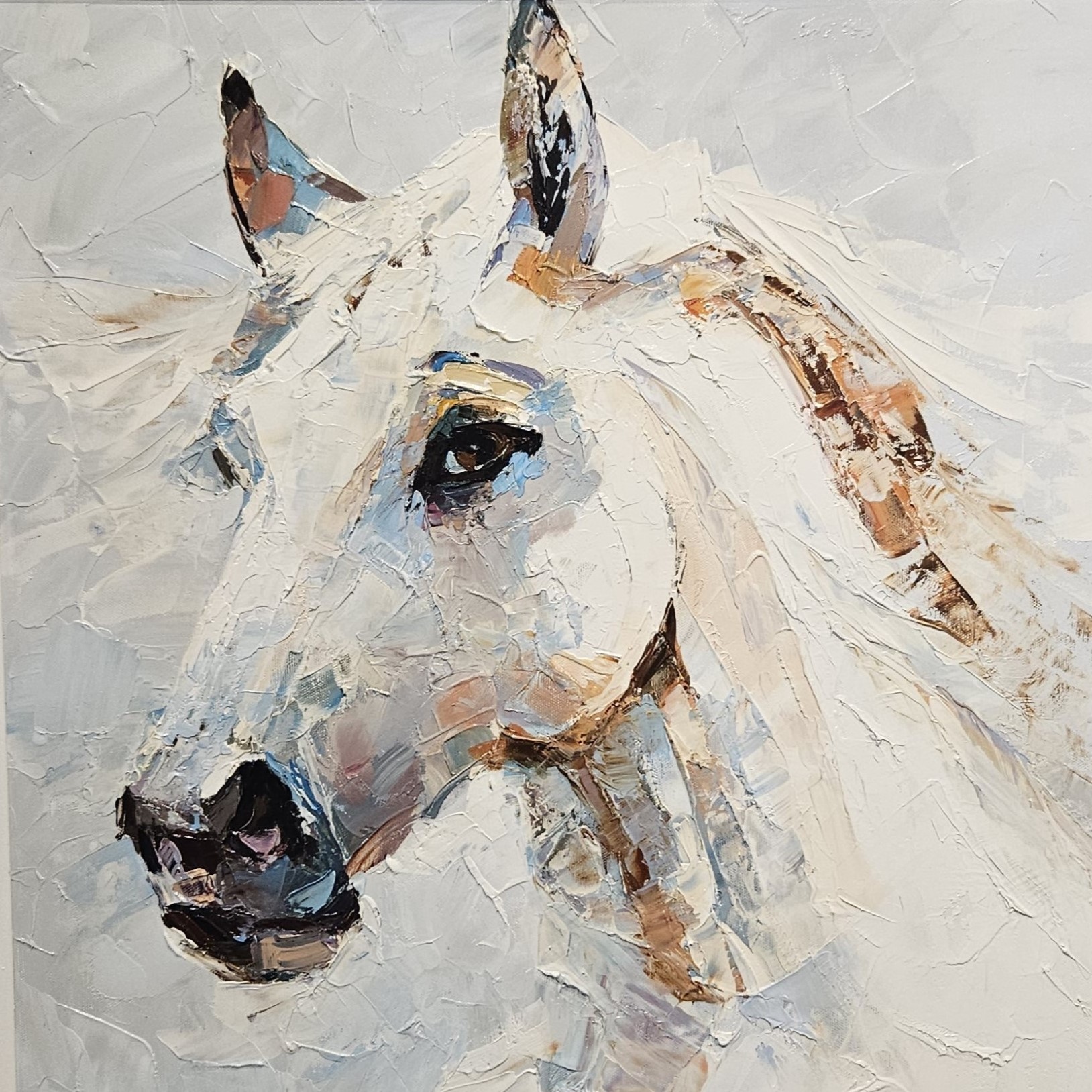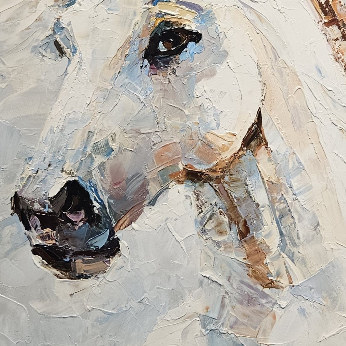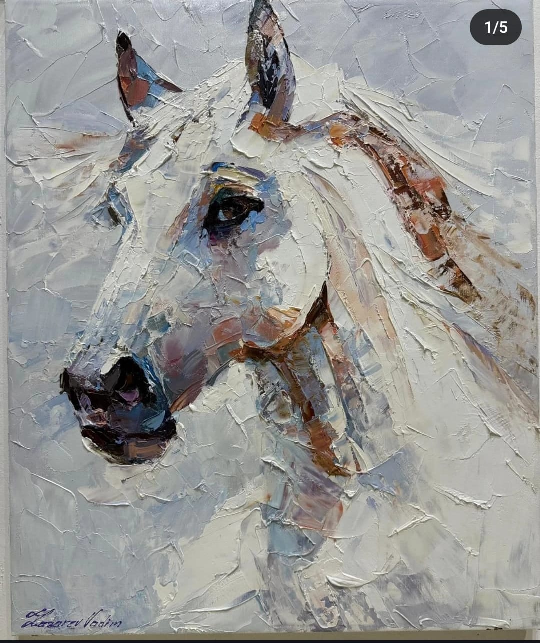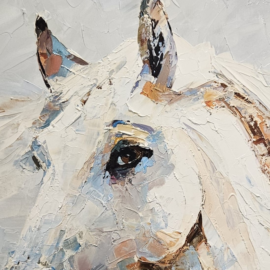 White horse painting, horse portrait oil painting, modern animal painting, horse head canvas, Vadim Lazarev