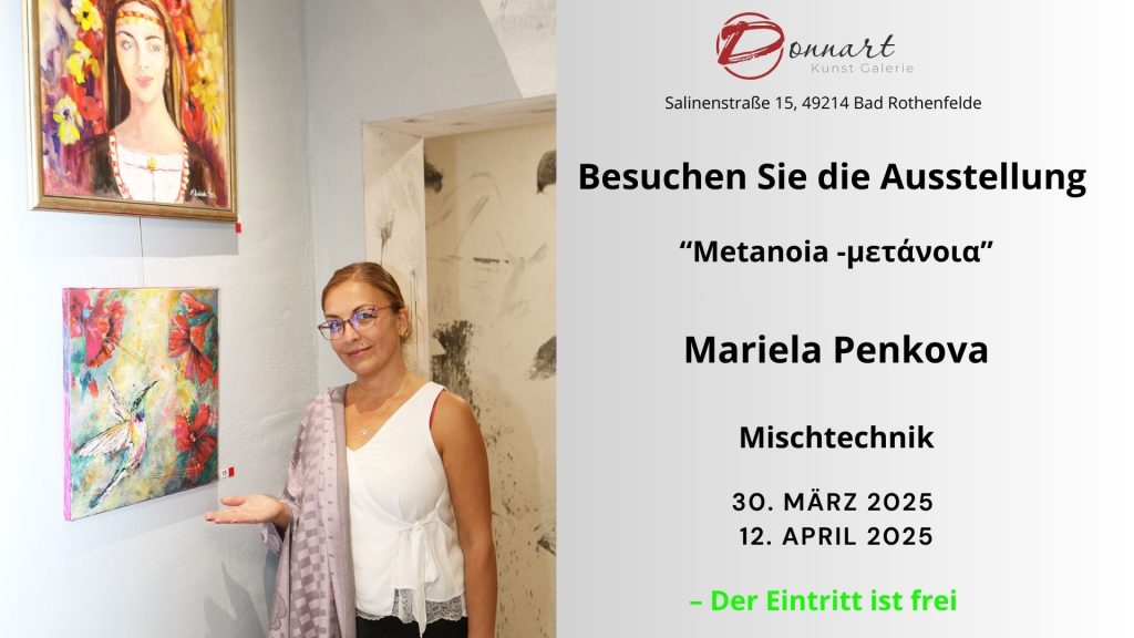 From May 4 to May 17, 2025, Donnart Kunst Galerie in Bad Rothenfelde hosted an impressive exhibition by artist Simeon Krastev – a master of watercolor and oil painting whose style combines depth, vibrancy, and psychological sensitivity.