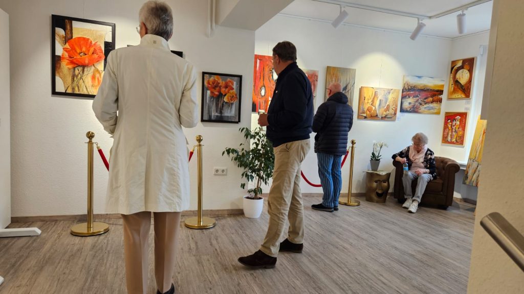 Kornelia Urban-Düvel presented a remarkable selection of works – ranging from abstract and experimental acrylic paintings to figurative pieces, nature-inspired scenes, and humorous depictions of animals. Her art is marked by spontaneity, rich color harmonies, and a keen sense of composition. The response from guests was overwhelmingly positive and appreciative.