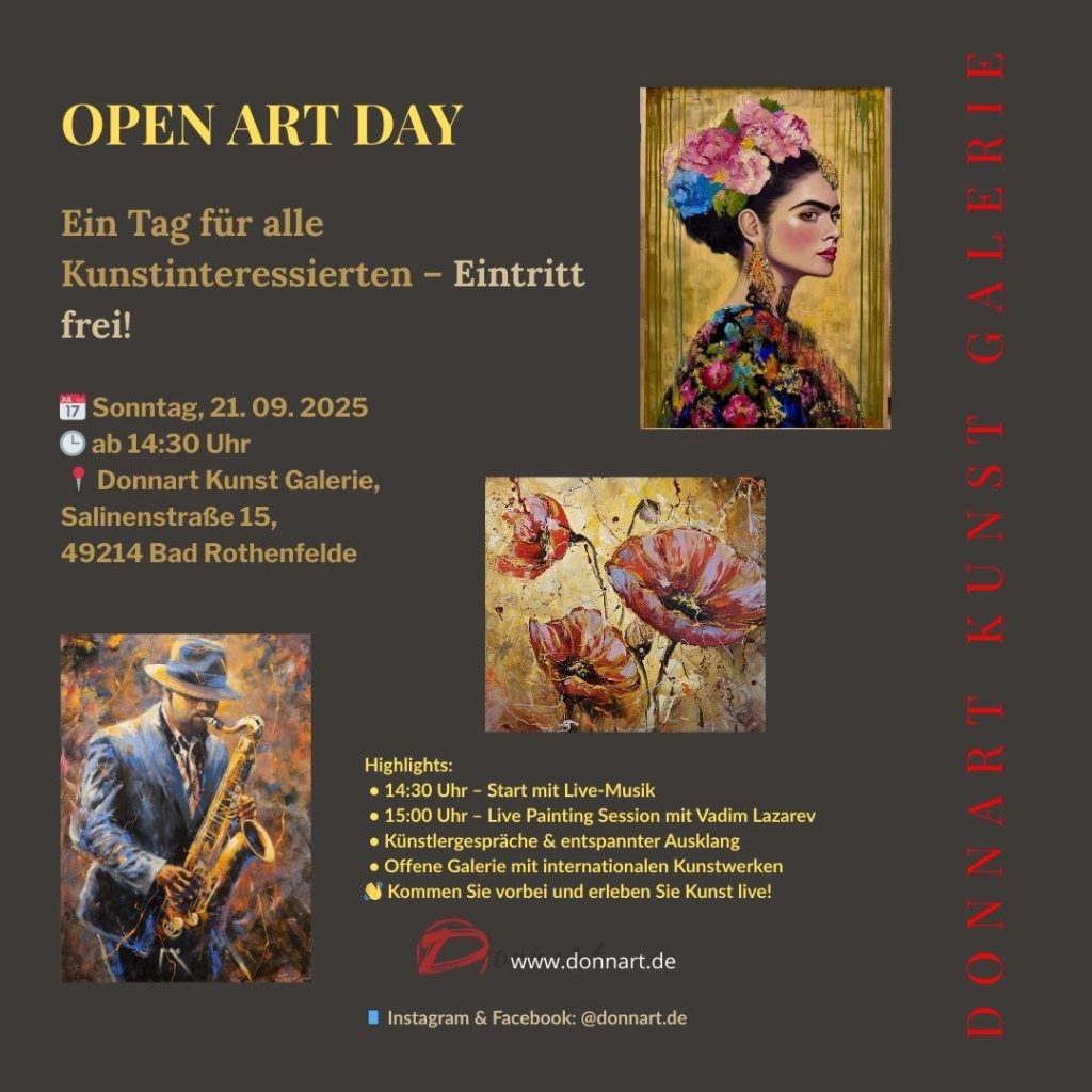 On September 21, 2025, the Open Art Day follows – a day for all art lovers with free admission, live music, artist talks, and a live painting session.