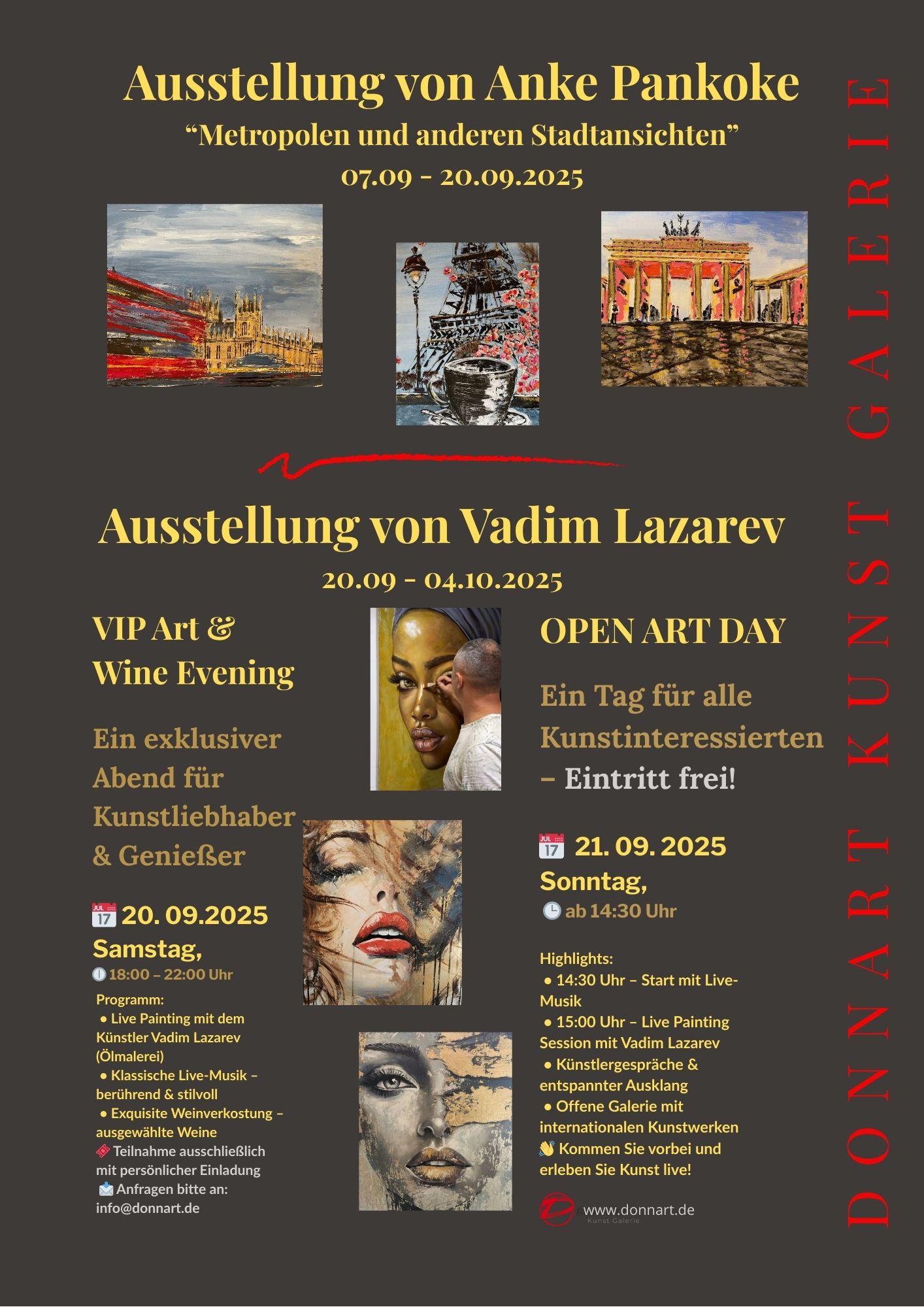 On September 20, 2025, Donnart Art Gallery invites you to an exclusive VIP Art & Wine Evening with artist Vadim Lazarev – an evening filled with live painting, classical music, and fine wines.