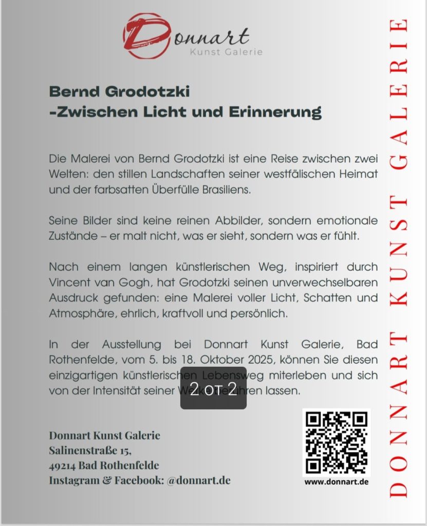 Venue: Donnart Kunst Galerie, Salinenstraße 15, 49214 Bad Rothenfelde, Germany