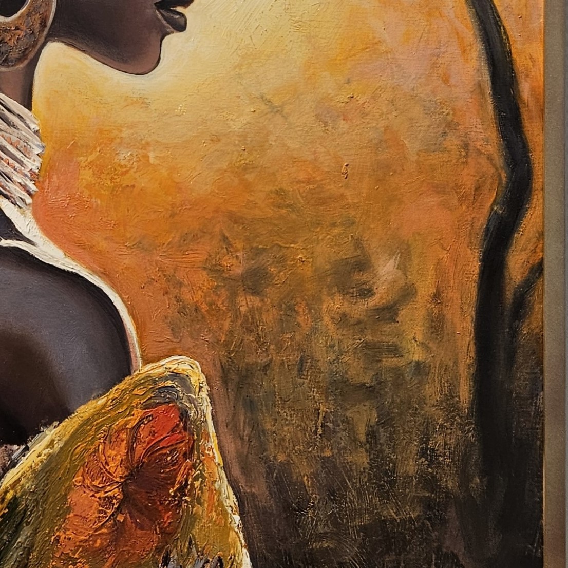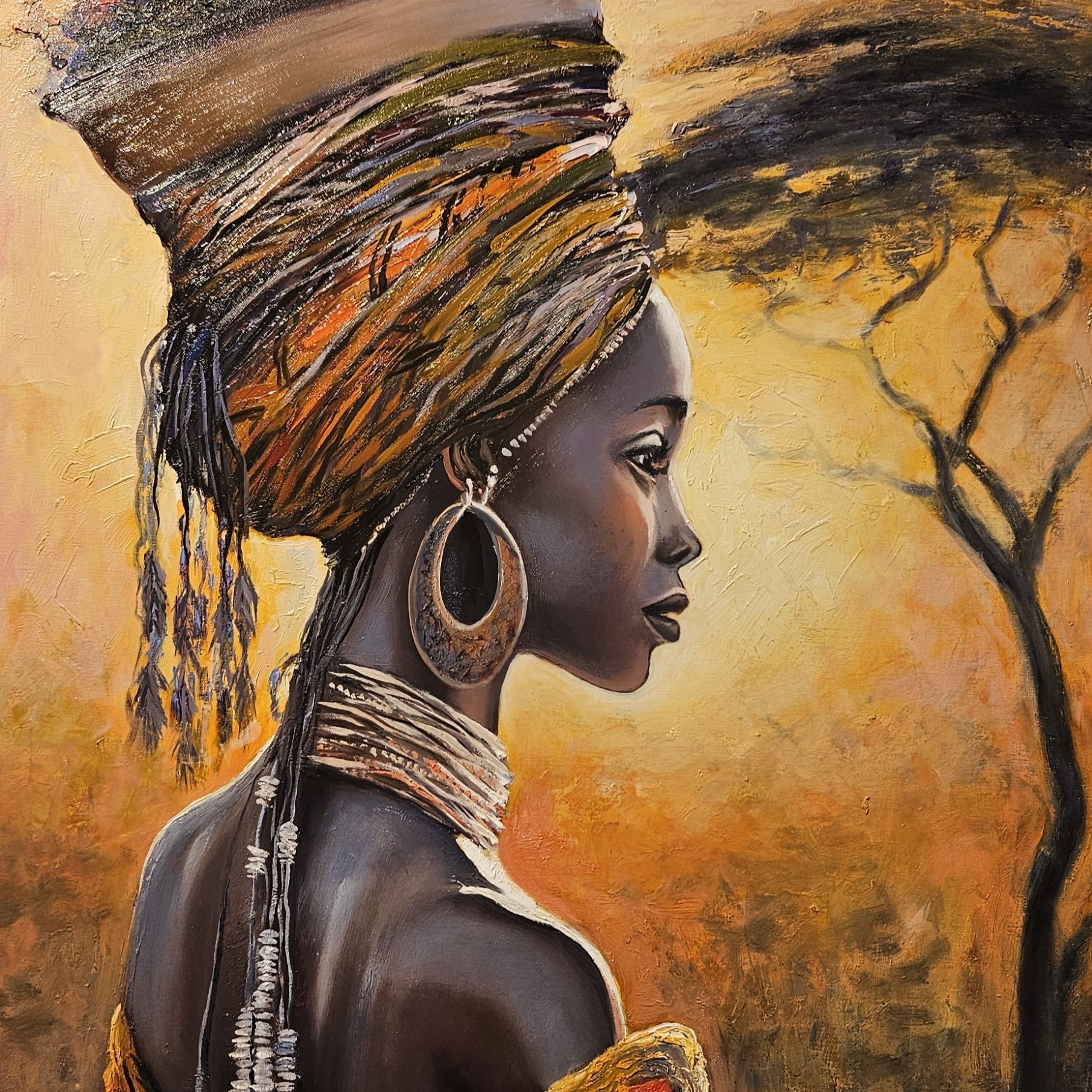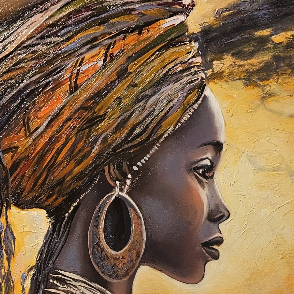 SEO-Schlüsselwörter: afrikanisches Porträt, Vadim Lazarev Kunst, Frau aus Afrika Gemälde, Tribal Kunst, Spachteltechnik Ölbild, kulturelle Eleganz