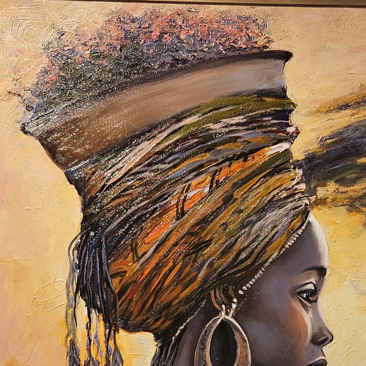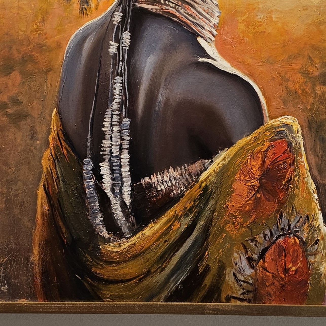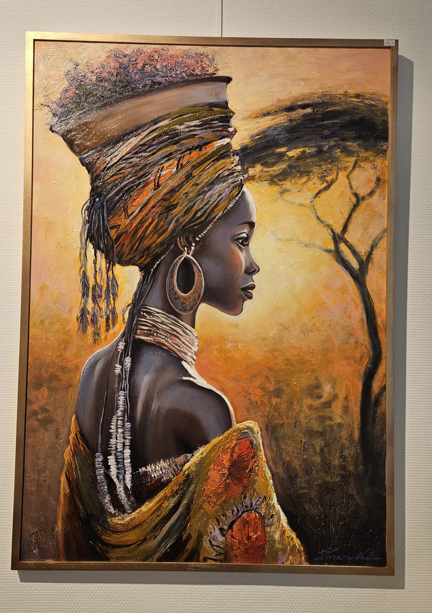 SEO-Schlüsselwörter: afrikanisches Porträt, Vadim Lazarev Kunst, Frau aus Afrika Gemälde, Tribal Kunst, Spachteltechnik Ölbild, kulturelle Eleganz