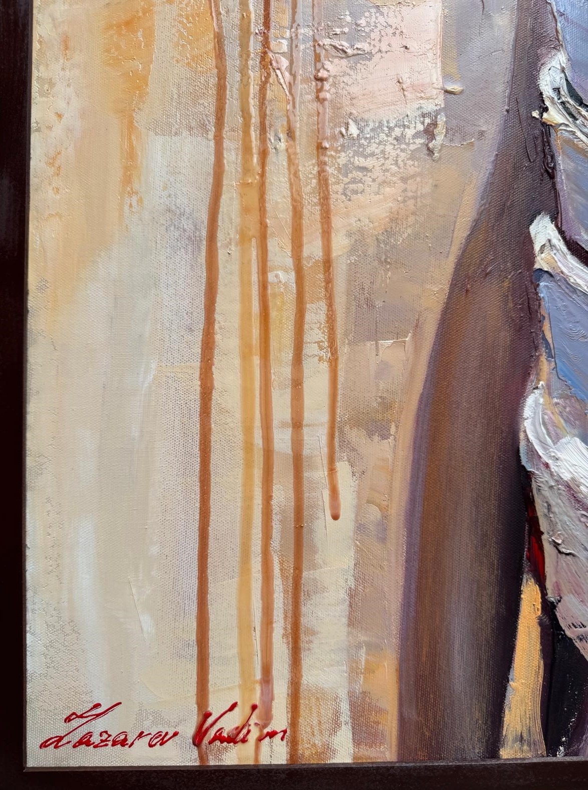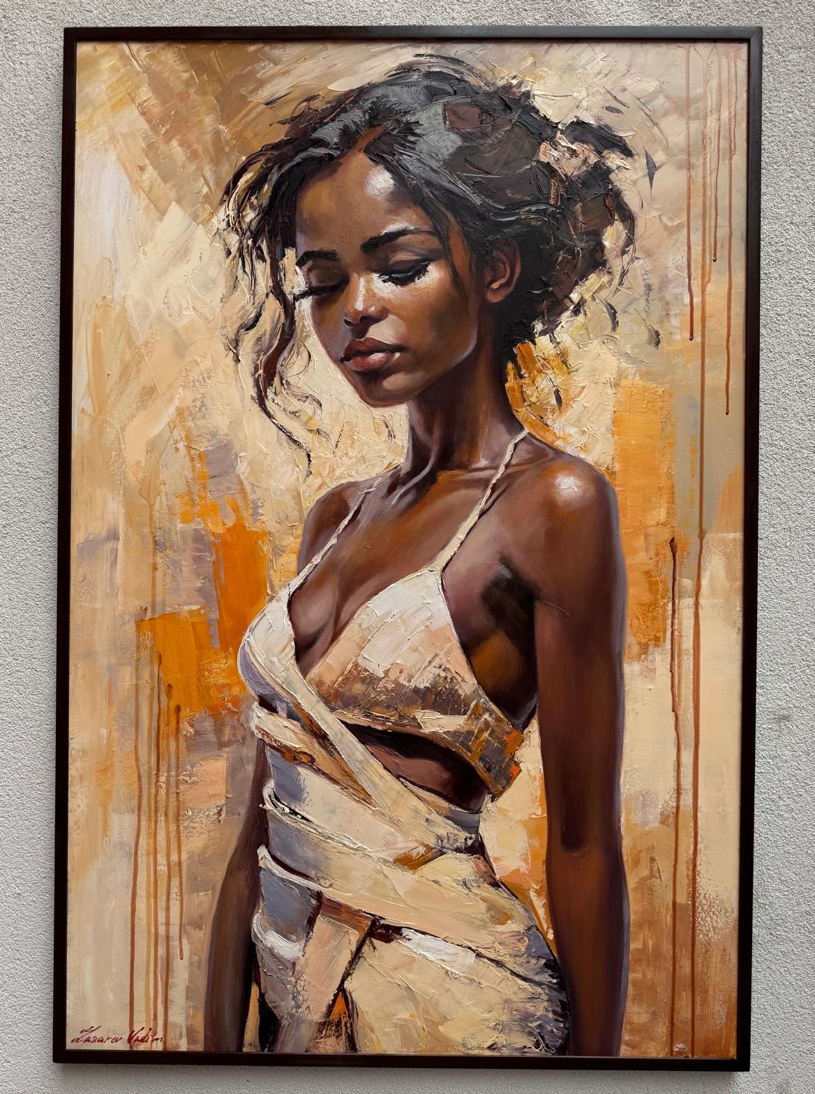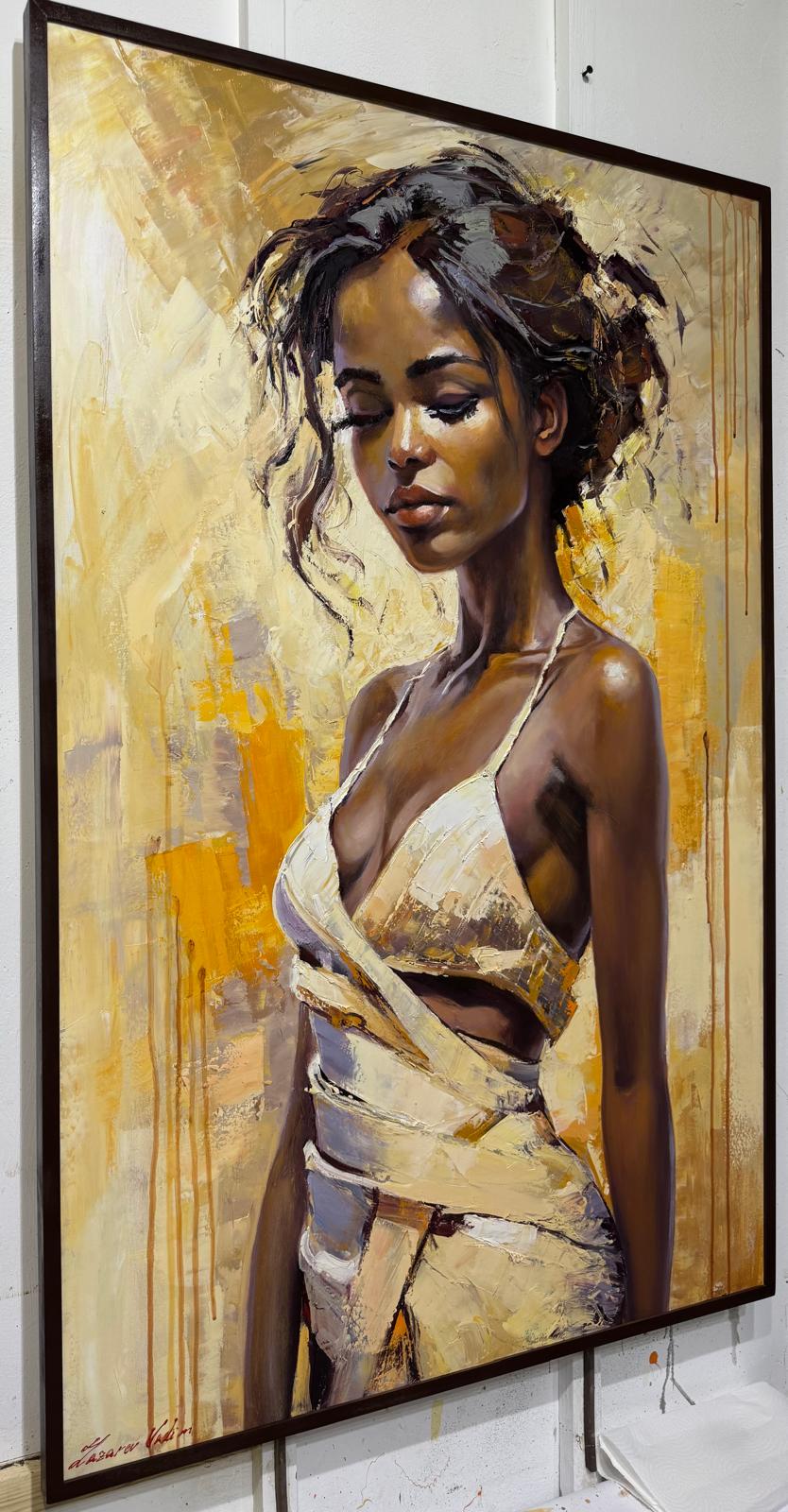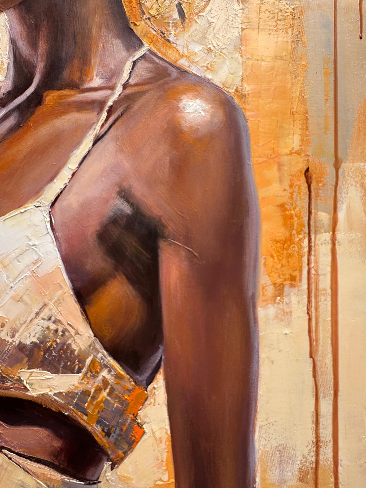Vadim Lazarev Porträt, figurative Malerei, Ölbild Frau, Ockertöne Kunst, Impasto Spachteltechnik, zeitgenössisches Porträt, moderne Kunst kaufen, Galerie Bad Rothenfelde, Kunstwerk Öl auf Leinen