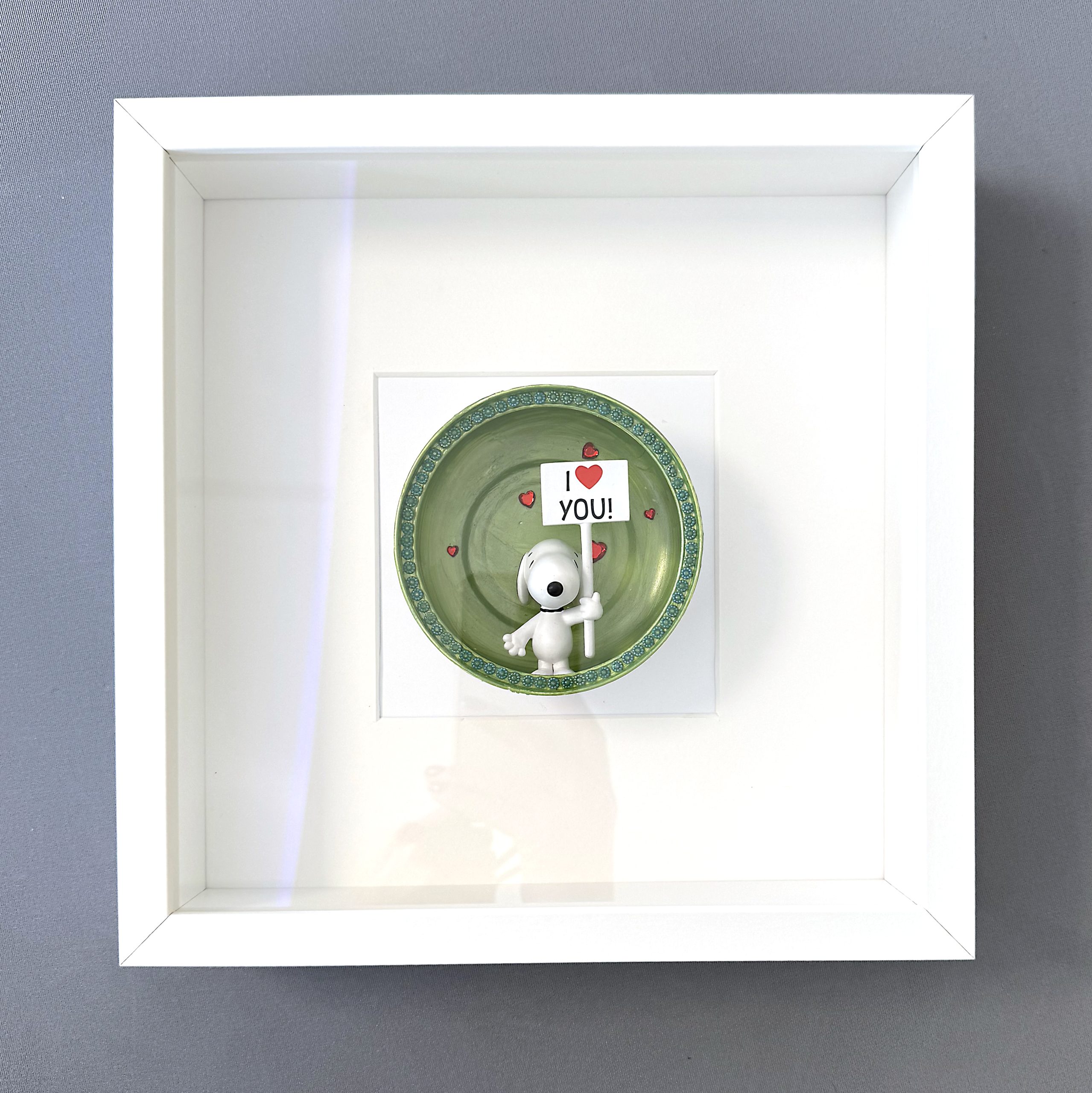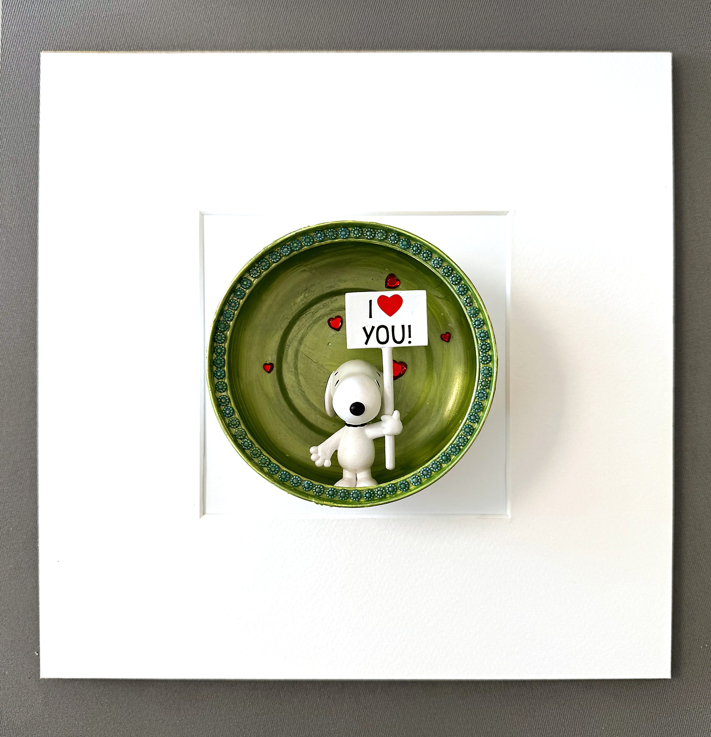 Snoopy, I Love You, romantisches Geschenk, Liebesdeko, 3D Collage, handgefertigte Kunst, Wanddekoration, Peanuts, Jahrestagsgeschenk, Valentinstag, einzigartiges Kunstwerk, Pop Art, Vintage Design, liebevolles Geschenk, Wohndekoration, Snoopy-Liebhaber