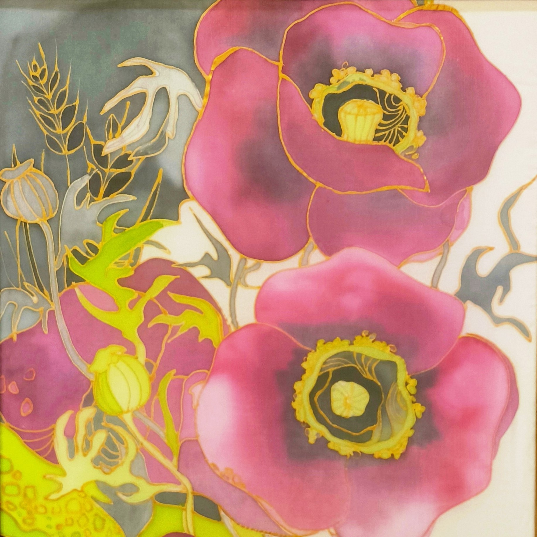 Naturseide, Seidenfarben, Goldkontur