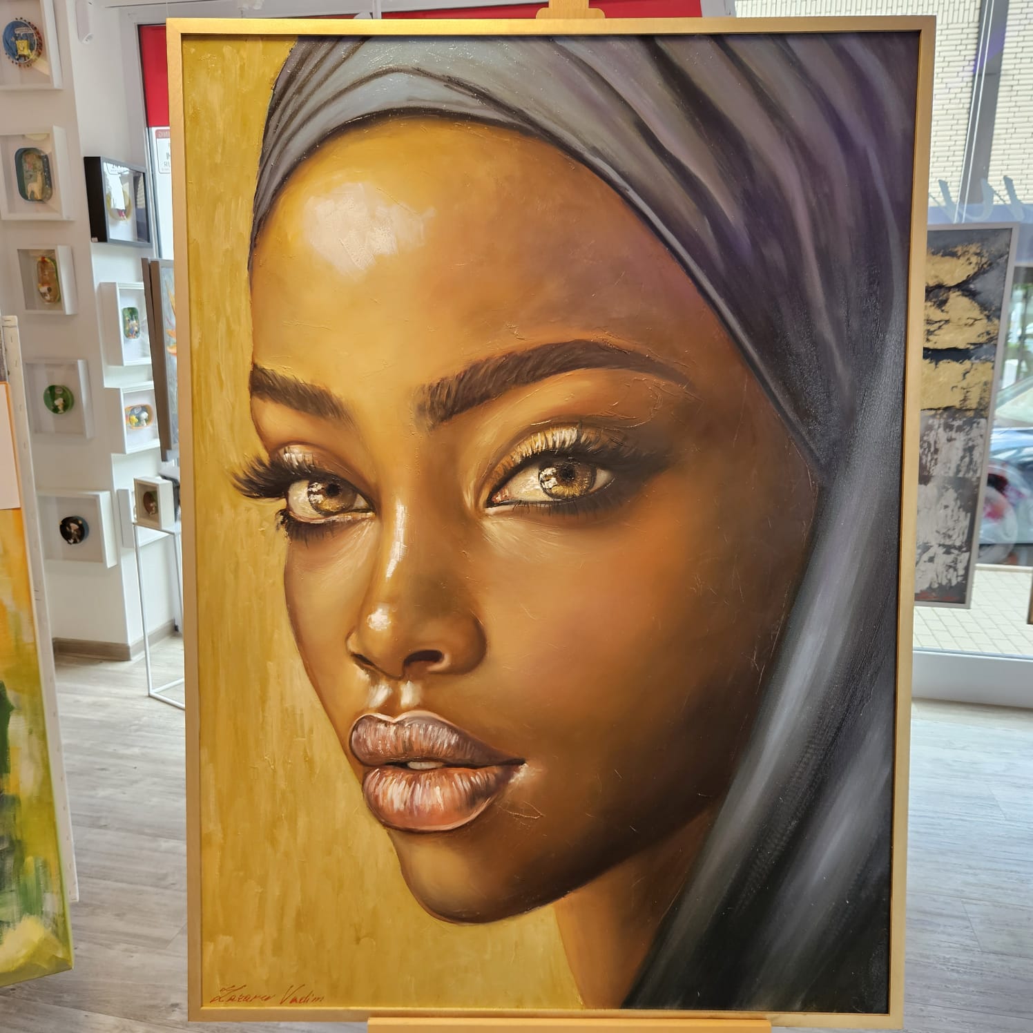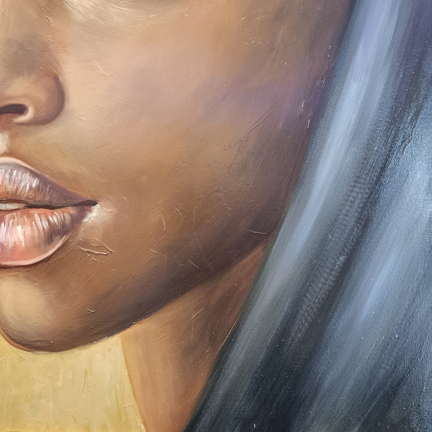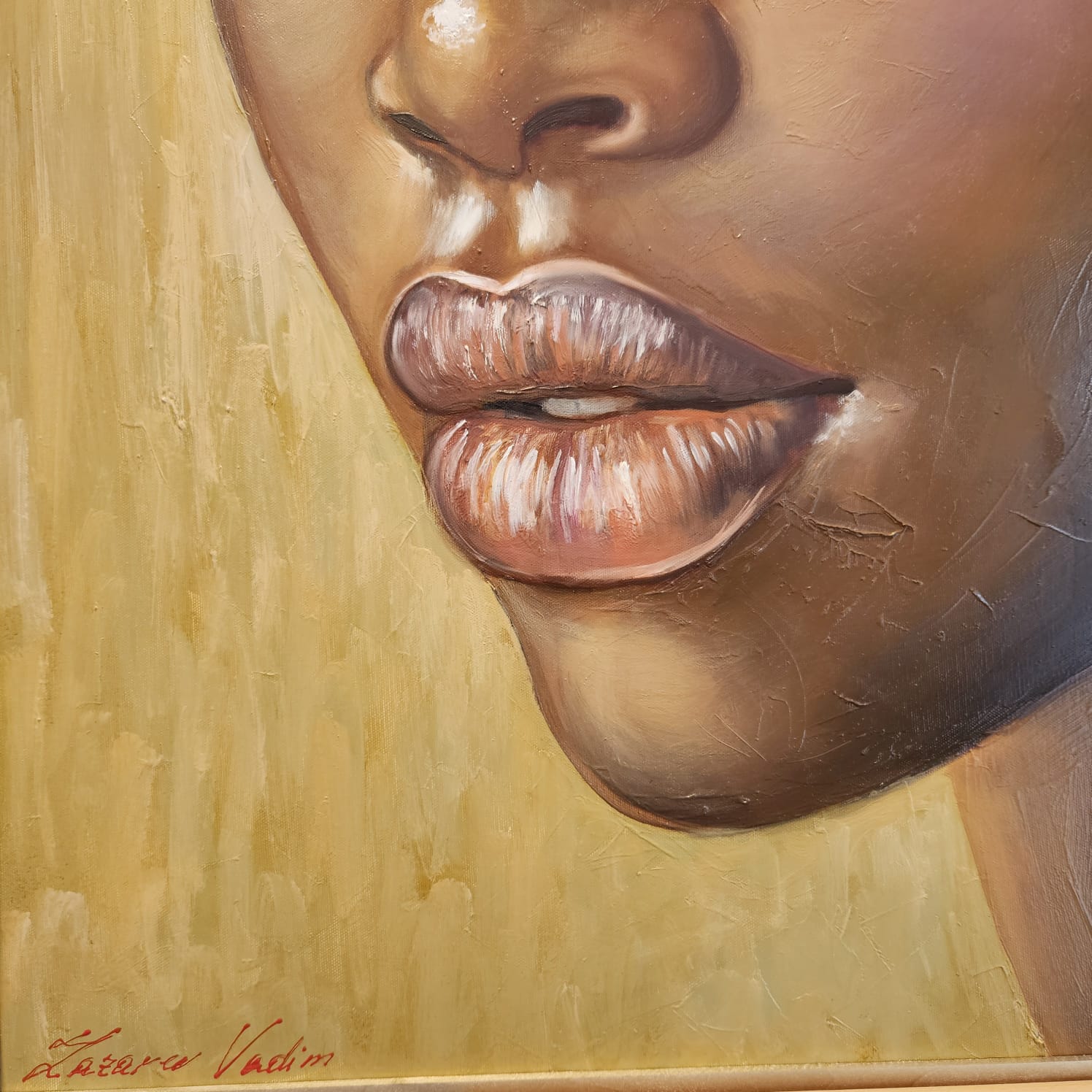 realistisches Frauenporträt, Ölgemälde schwarze Frau, leuchtende Haut, Vadim Lazarev