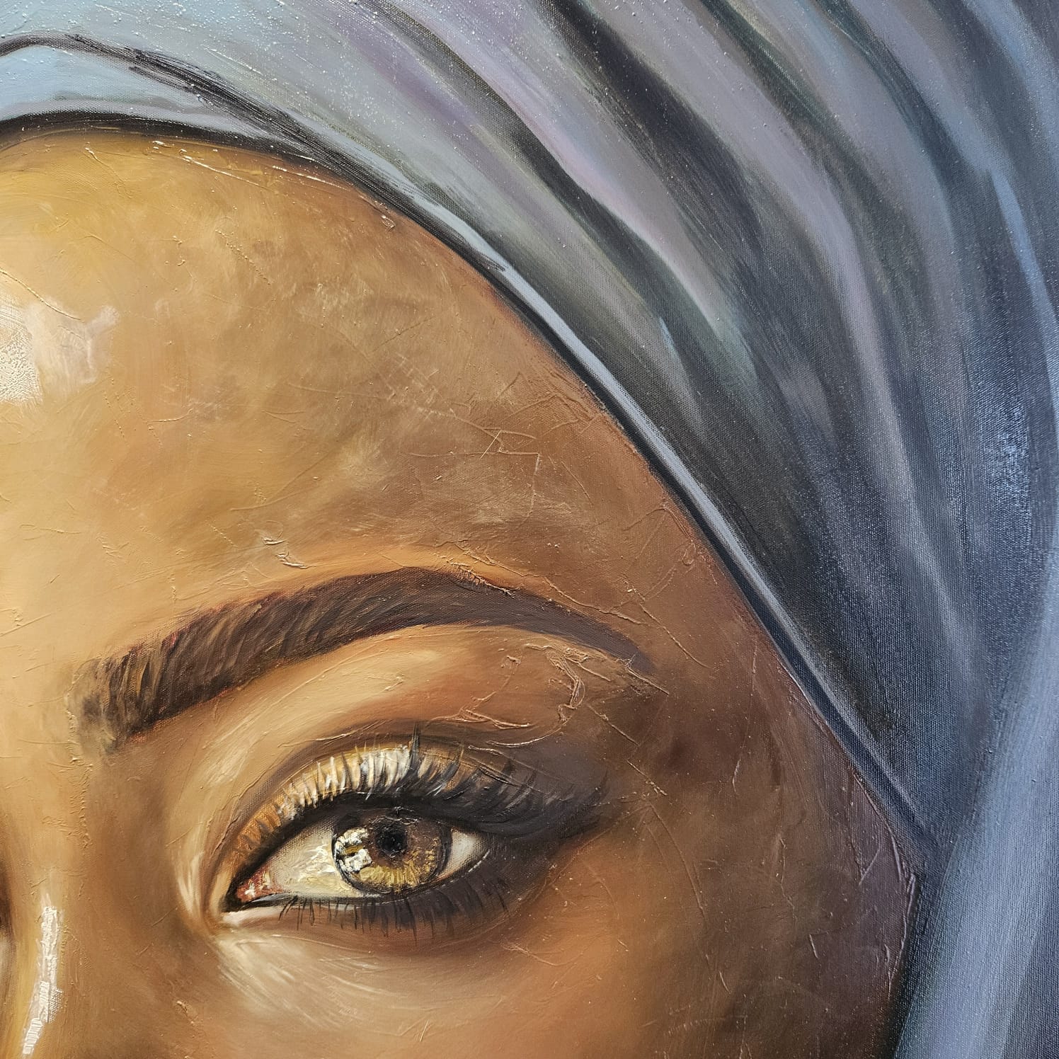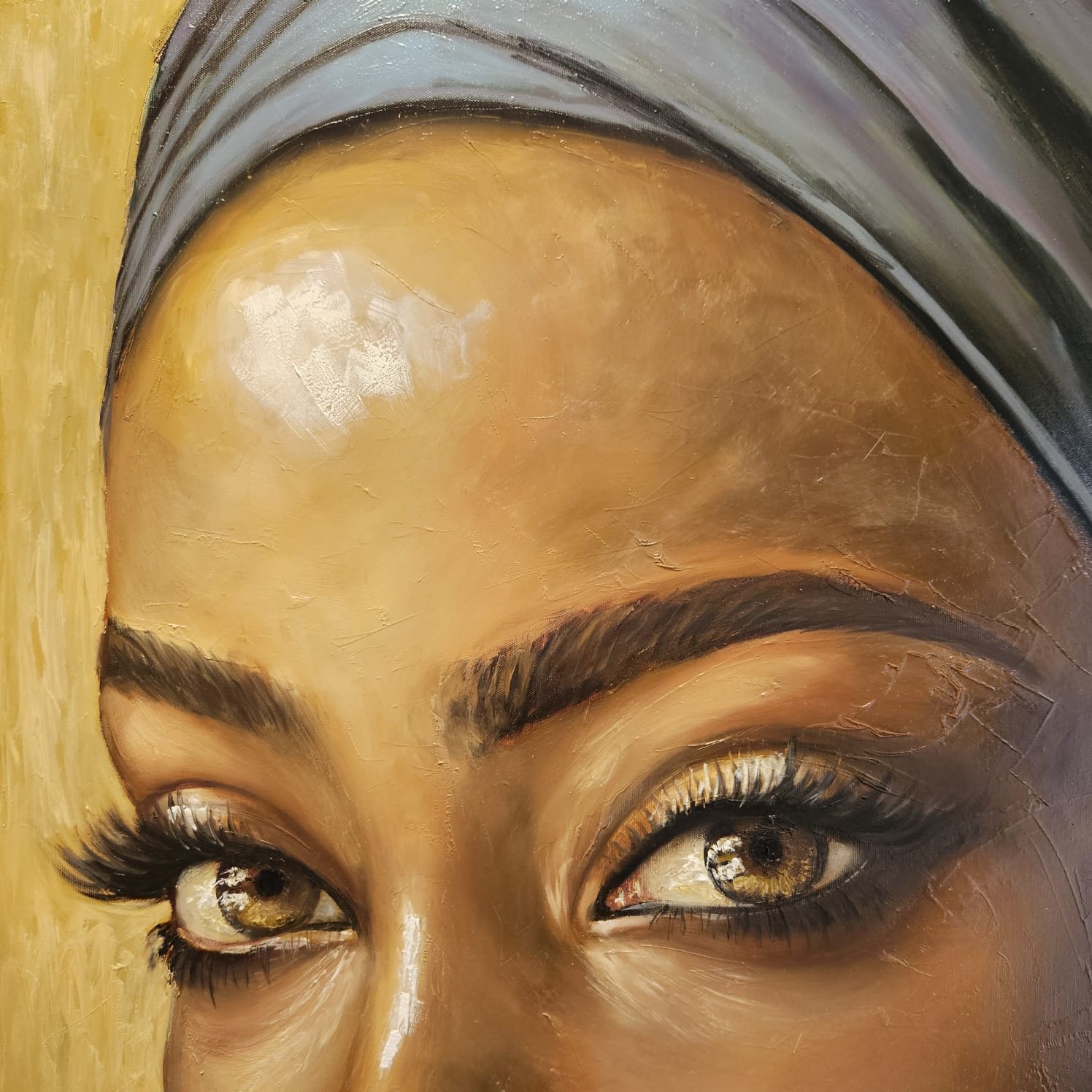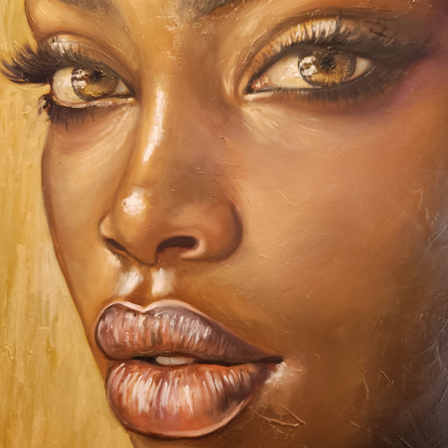 realistisches Frauenporträt, Ölgemälde schwarze Frau, leuchtende Haut, Vadim Lazarev