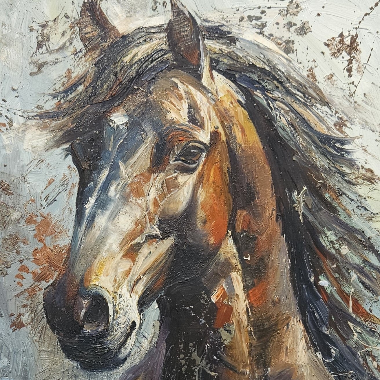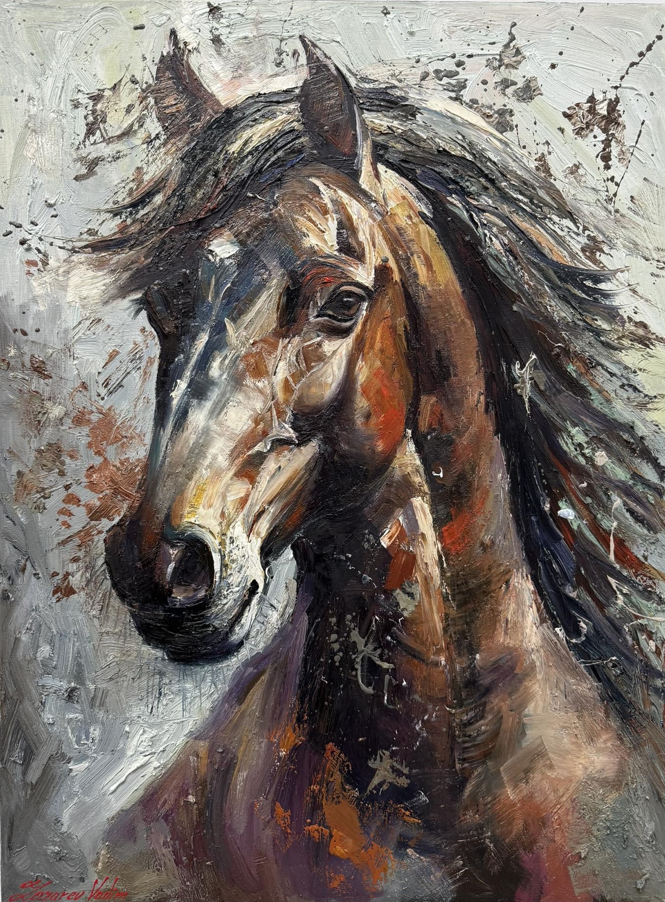 braunes Pferd Gemälde, dynamisches Pferdebild, Tierkunst Ölmalerei, Pferde auf Leinwand, Vadim Lazarev