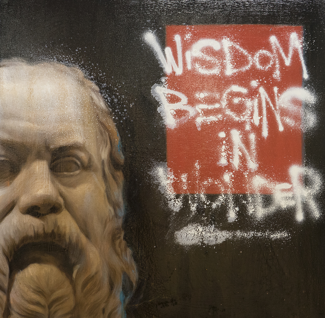 Acrylfarben, Ölpastelle und Spraydosen auf Leinwand